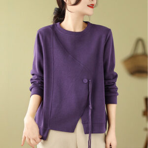 Be the first to review “Fall Plain Button Crew Neck Cotton Pullover Women’s Sweatshirt”