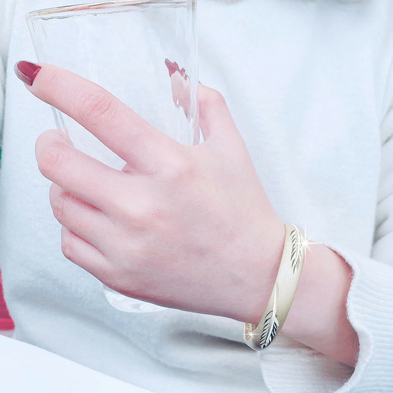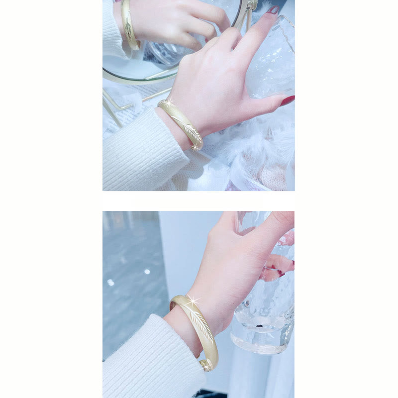 Anyelle Feather Heart Sutra Engraved Pattern Wealth Copper Cuff Bracelet Bangle Bracelet Bangle BS 1
