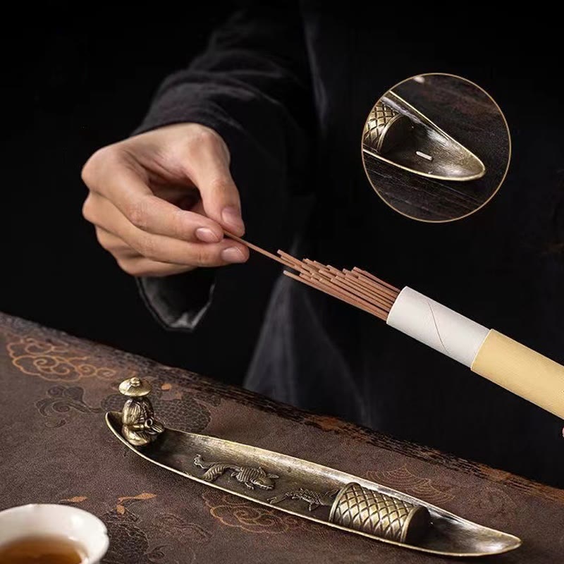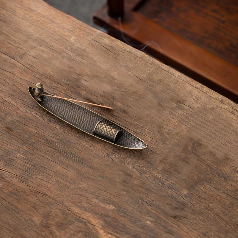 Fisherman Boat Incense Burner crafted from durable zinc alloy features an intricate design of a koi fish and boat. This symbolic piece embodies prosperity and tranquility, making it ideal for creating a serene ambiance. Its thoughtful craftsmanship allows for steady incense burning, providing a calming atmosphere for relaxation, meditation, or spiritual rituals.๐