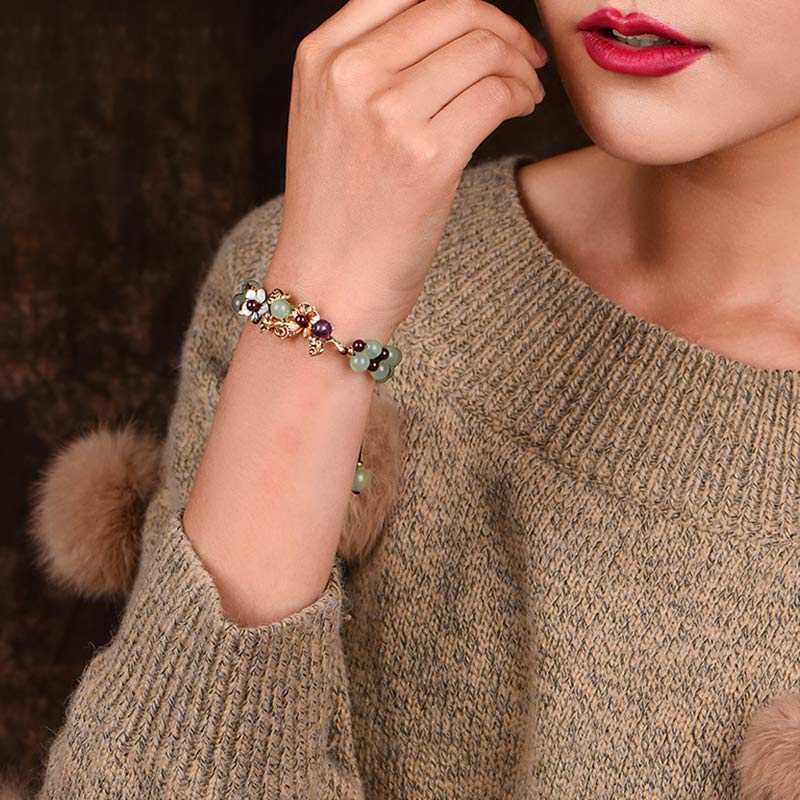 The Green Aventurine Garnet Bead Flower Petal Luck Bracelet is a beautiful piece of jewelry made from green aventurine and garnet beads. The bracelet is designed with flower petals and is believed to bring good luck to the wearer. It can be a great addition to any outfit and can also make a wonderful gift.💕