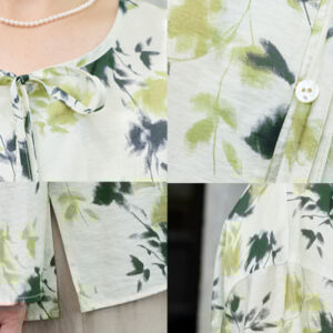 Be the first to review “Green Floral Leaves Lace-Up Buttons Long Sleeve Women’s Shirt For Older Adults”