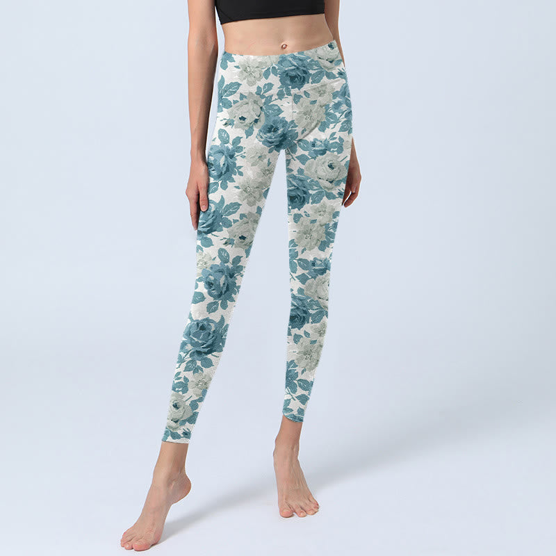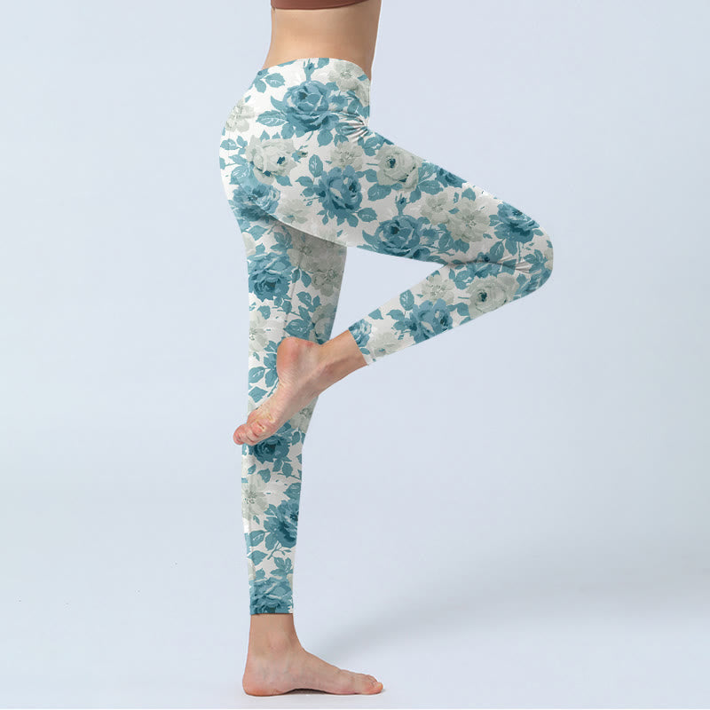 Green White Flower Gym Leggings Women’s Yoga Pants