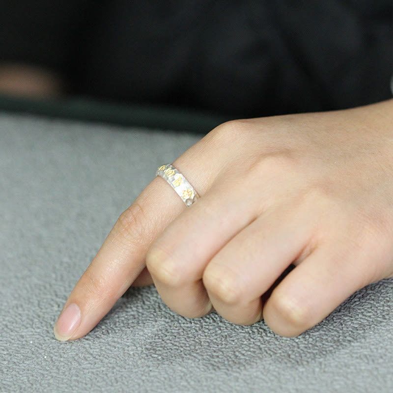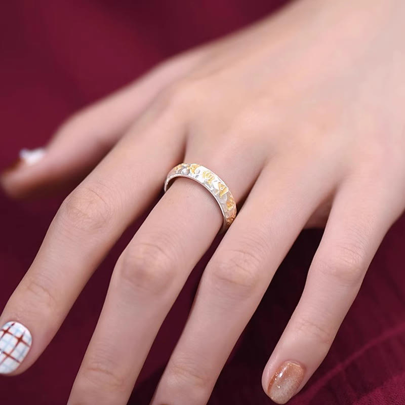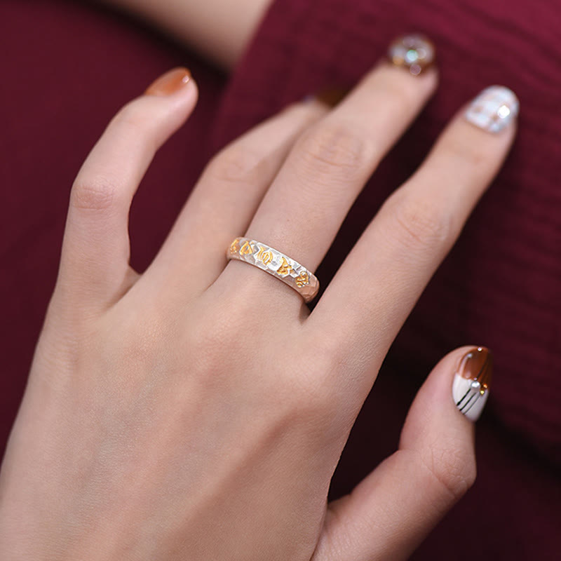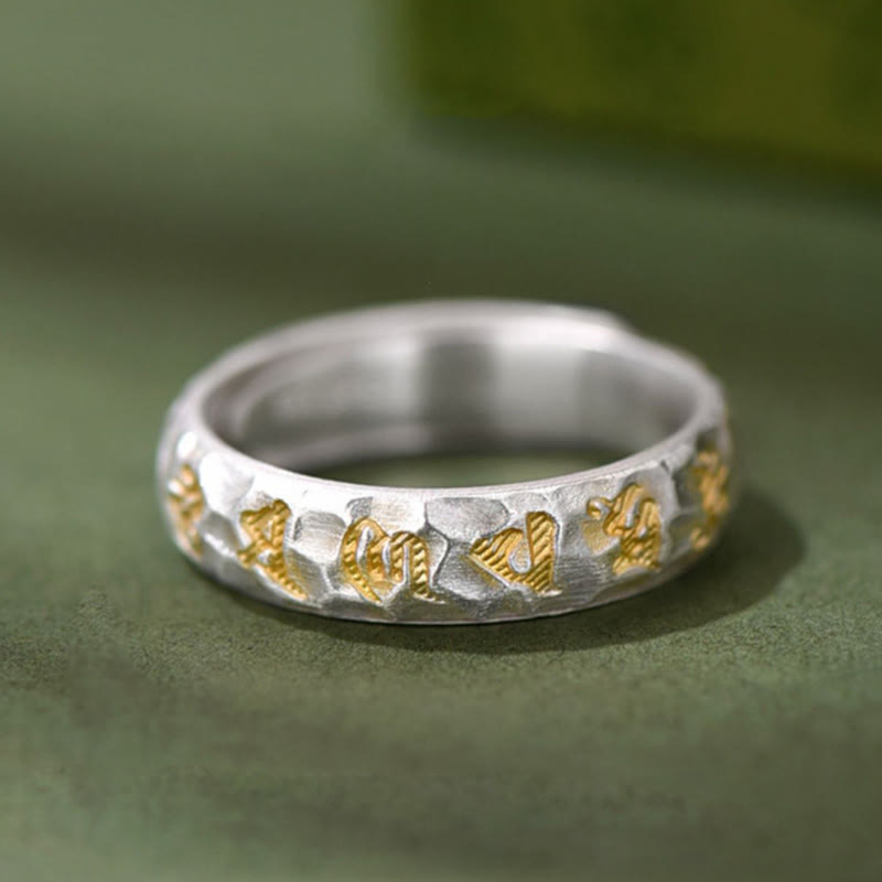 Hammer Pattern Om Mani Padme Hum Copper Plated Silver Wealth RingHammer Pattern Om Mani Padme Hum Copper Plated Silver Wealth Ring
