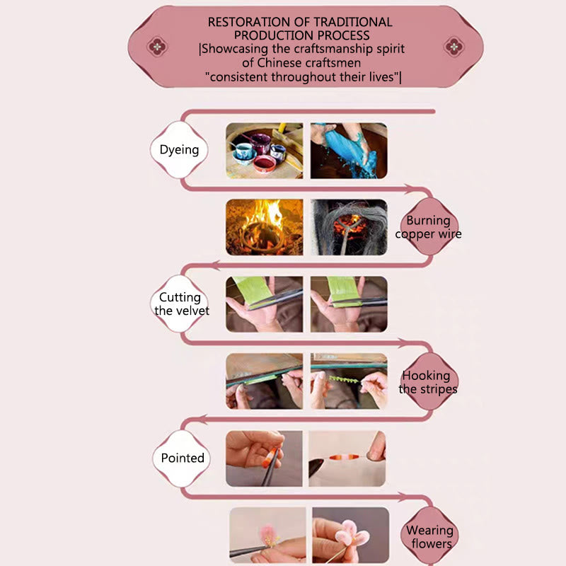 - Preservation of Cultural Heritage: The use of traditional velvet flower craftsmanship highlights the importance of preserving cultural heritage and artisanal skills. This showcases the beauty of handmade craftsmanship, particularly the intricate techniques passed down through generations in regions like Yangzhou.