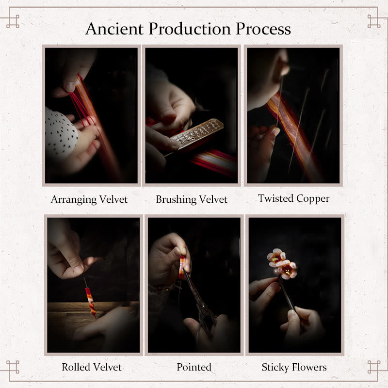 The popularity of Yangzhou velvet flowers can be traced back to 1,300 years ago. In spring, Li Xian, one of the Emperors of the Tang Dynasty, designated Yangzhou velvet flowers as imperial palace flowers to reward his beloved concubines. In ancient Yangzhou, the flower-making industry was very developed and it was a famous production area of craft flowers in China. Among the flower-making in Yangzhou, velvet flowers have the earliest history, the most varieties, and the greatest influence.
