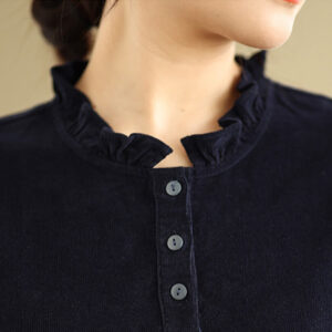 Be the first to review “Lace-Up Design Ruffled Crew Neck Cotton Corduroy Long Sleeve Midi Dress With Pockets”