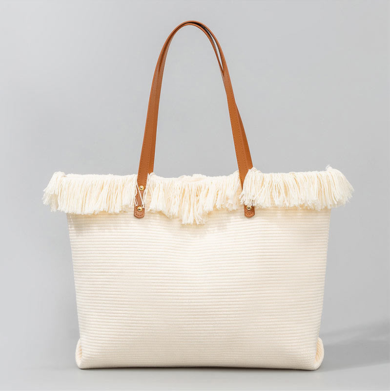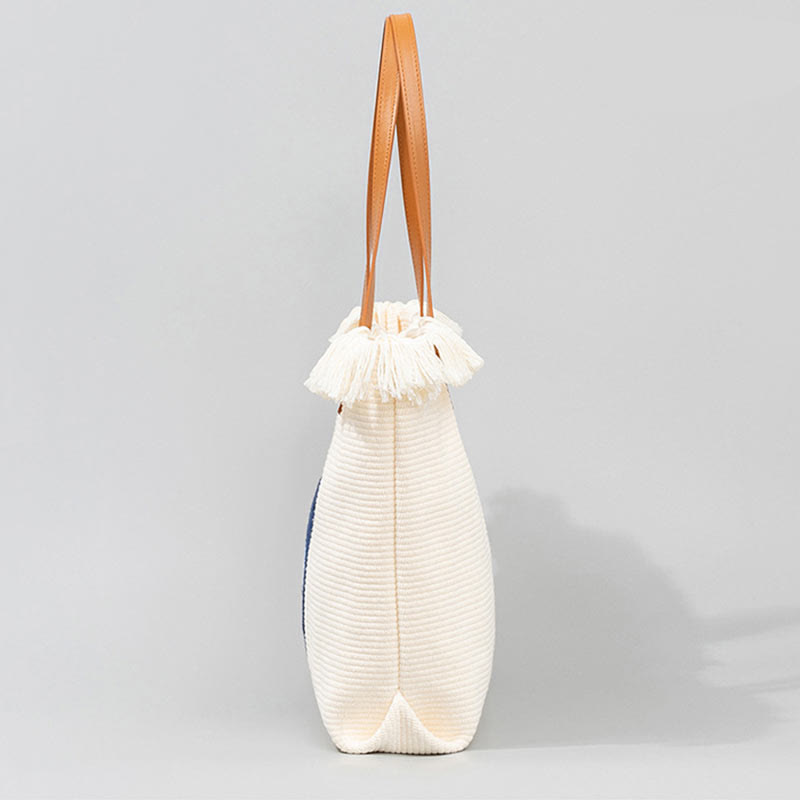 Large Capacity Evil Eye Leaf Hamsa Tassel Canvas Tote Shoulder Bag