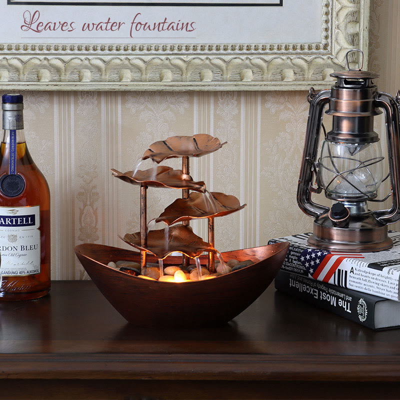 Lotus Leaf Shaped Waterfall Fountain Tabletop Ornaments With LED Light Home Office Desktop Decoration