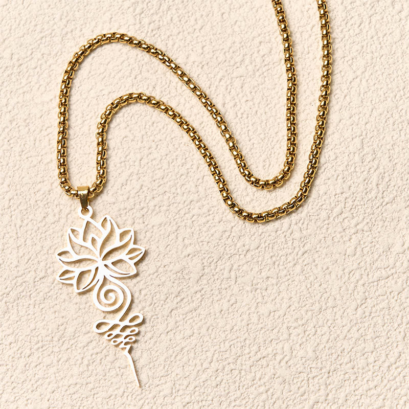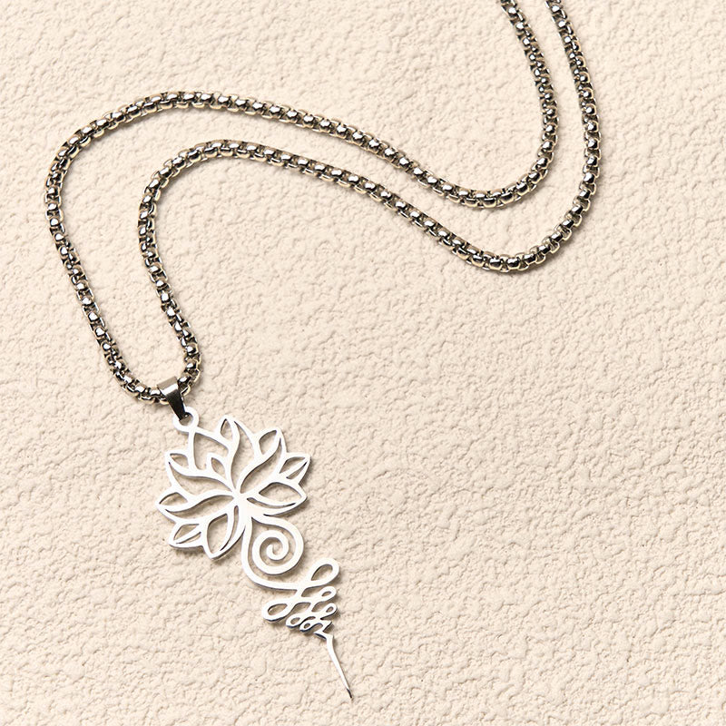 Lotus Unalome Chakra Symbol Design Stainless Steel Enlightenment Necklace PendantLotus Unalome Chakra Symbol Design Stainless Steel Enlightenment Necklace Pendant
