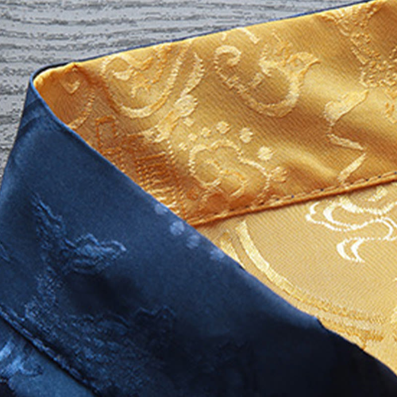 Koi Fish Pattern Jacket Shirt features a striking koi fish motif on the outer layer with a contrasting inner lining for added depth. Crafted from high-quality fabric, it offers comfort and durability. The frog-button closure reflects traditional design, while practical pockets add functionality. This piece combines cultural symbolism and utility for a meaningful wardrobe addition.๐