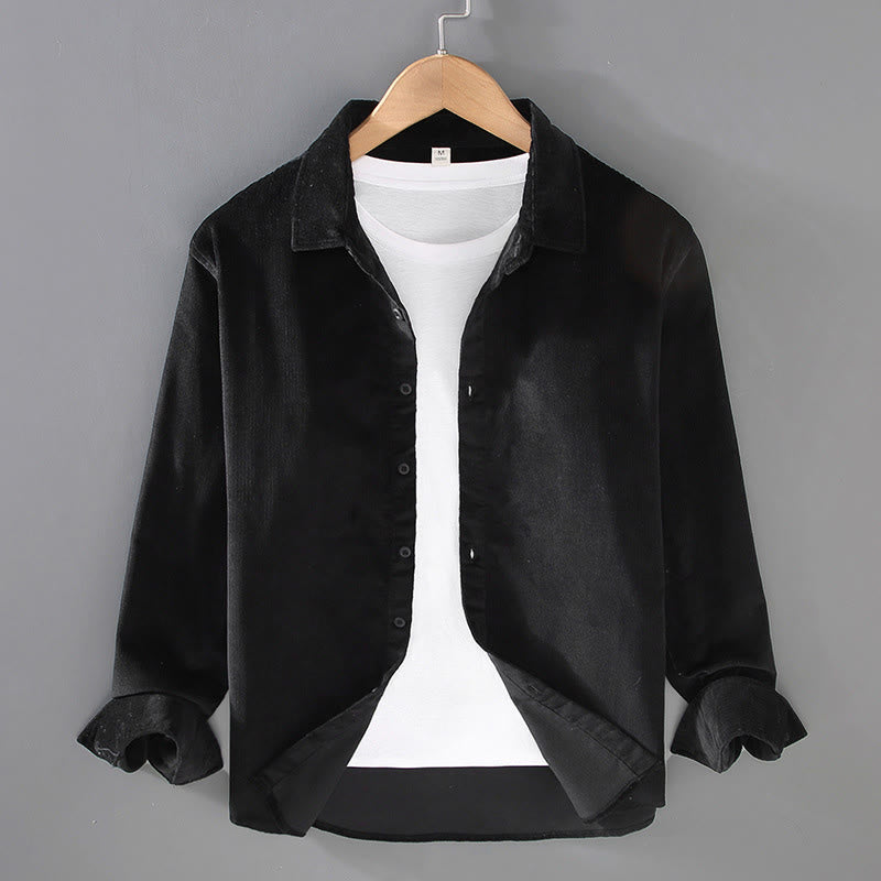 Men’s Solid Color Buttons Design Long Sleeve Pure Cotton Corduroy Shirt