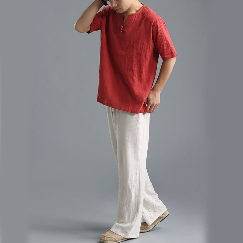 Men’s Solid Color V-Neck Button shirt features a minimalist design with a comfortable fit. Crafted from breathable cotton linen, this short sleeve shirt is perfect for those who appreciate simplicity and comfort. The V-neck and button details add a touch of sophistication, making it ideal for casual gatherings or relaxed settings, embodying both elegance and ease.💕