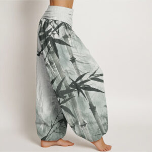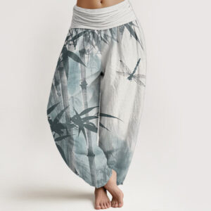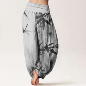 - Design: The harem pants feature a delicate pattern of bamboo leaves and a dragonfly, symbolizing resilience, flexibility, and harmony with nature. This design evokes a sense of peaceful vitality and graceful balance.
