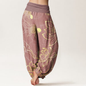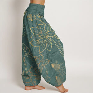 - Design: This harem pants design features koi fish, lotus flowers, and leaves. The koi swims lightly in the soft curves, showing a smooth posture, while the lotus adds a tranquil and natural atmosphere with delicate texture details. The overall pattern presents a tranquil scene, cleverly combining water, plants and elegant dynamic elements.