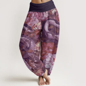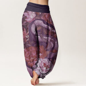 Snake Peony Flowers Leaf Harem Pants feature intricate snake, peony flower, and leaf patterns, symbolizing resilience and natural harmony. Made from soft, breathable fabric with an elastic waistband, these pants ensure comfort and versatility. The symbolic design resonates with those seeking inner peace and balance, making them ideal for meditation, yoga, or relaxed settings.๐Ÿ’•