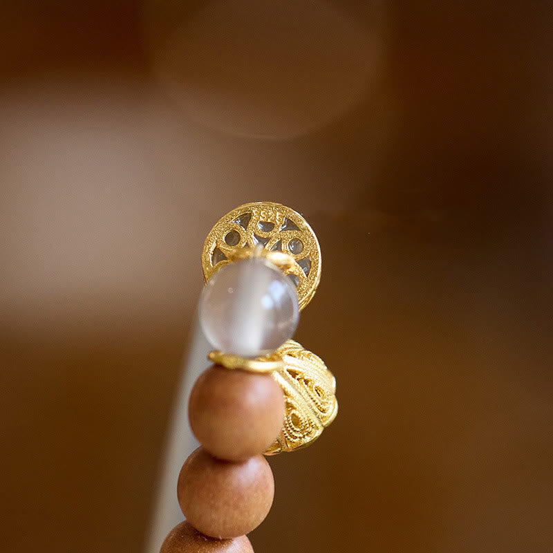 - Material: Sandalwood, Gray Agate, Chalcedony, 925 Sterling Silver Gold Plated