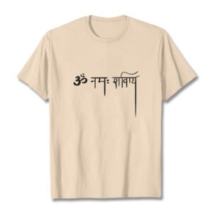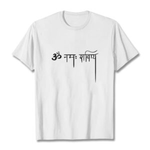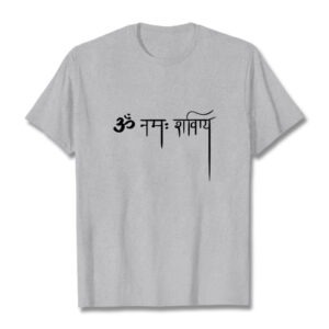 - DESIGN INSPIRATION: This T-shirt design features Sanskrit: ॐ नमः शिवाय. Namah Shivaya means “O salutations to the auspicious one!”, or “adoration to Lord Shiva”. It is called Siva Panchakshara, or Shiva Panchakshara.