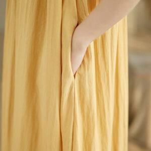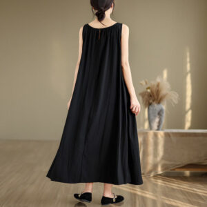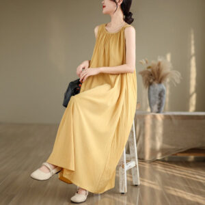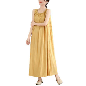 Be the first to review “Summer Casual Plain Pleated Design Sleeveless Crew Neck Cotton Midi Dress With Pockets”