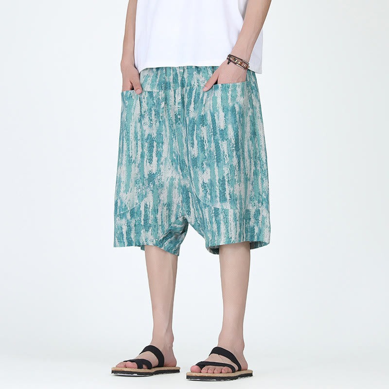 Summer Stripes Cotton Linen Men's Capri Pants With PocketsSummer Stripes Cotton Linen Men’s Capri Pants With Pockets