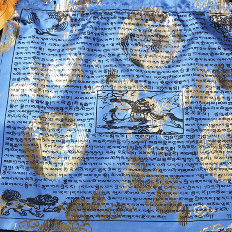 - Each flagย features a large variety of prayers surrounding the center image of lungta, a Windhorse. Lungta is also the Tibetan word for ‘prayer flag’. Circulates a feeling of Harmony and increases the Spiritual Atmosphere. It Brings Spiritual Vibration carried by the wind across the house.