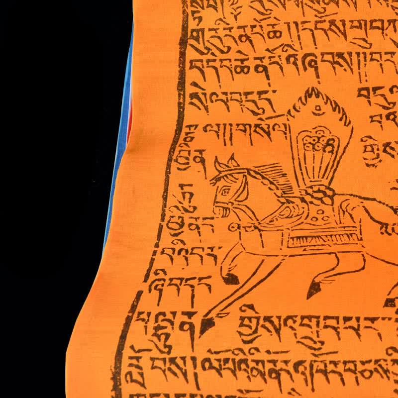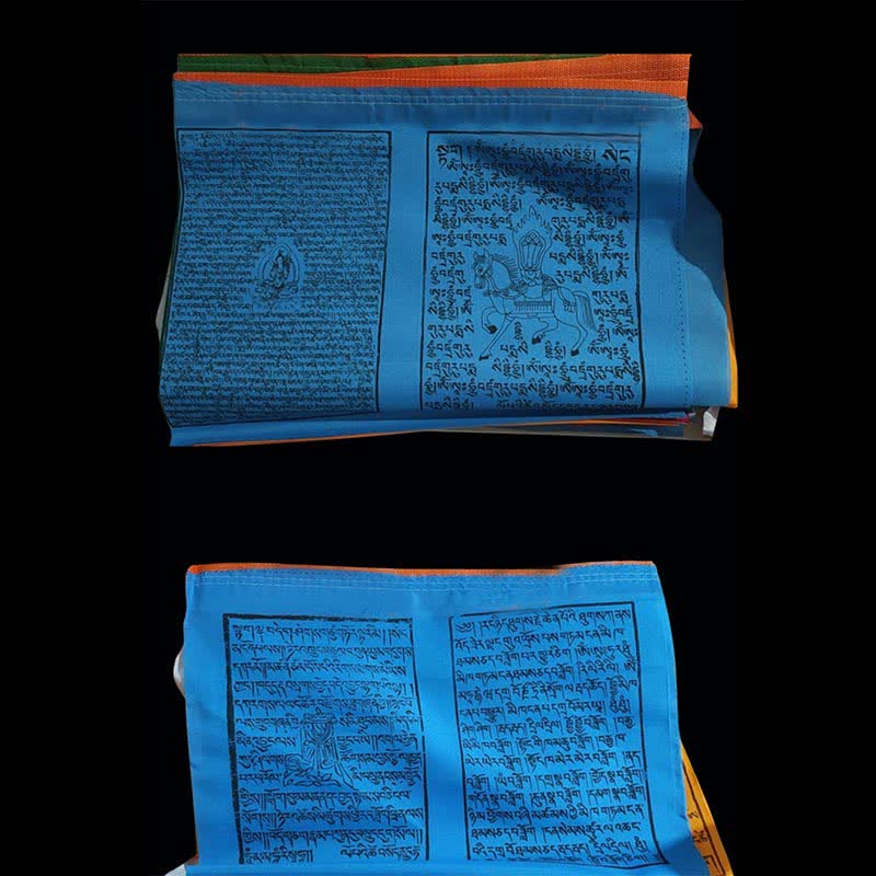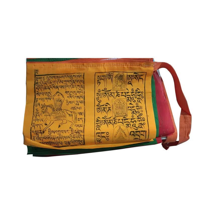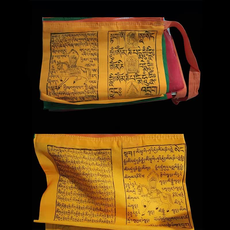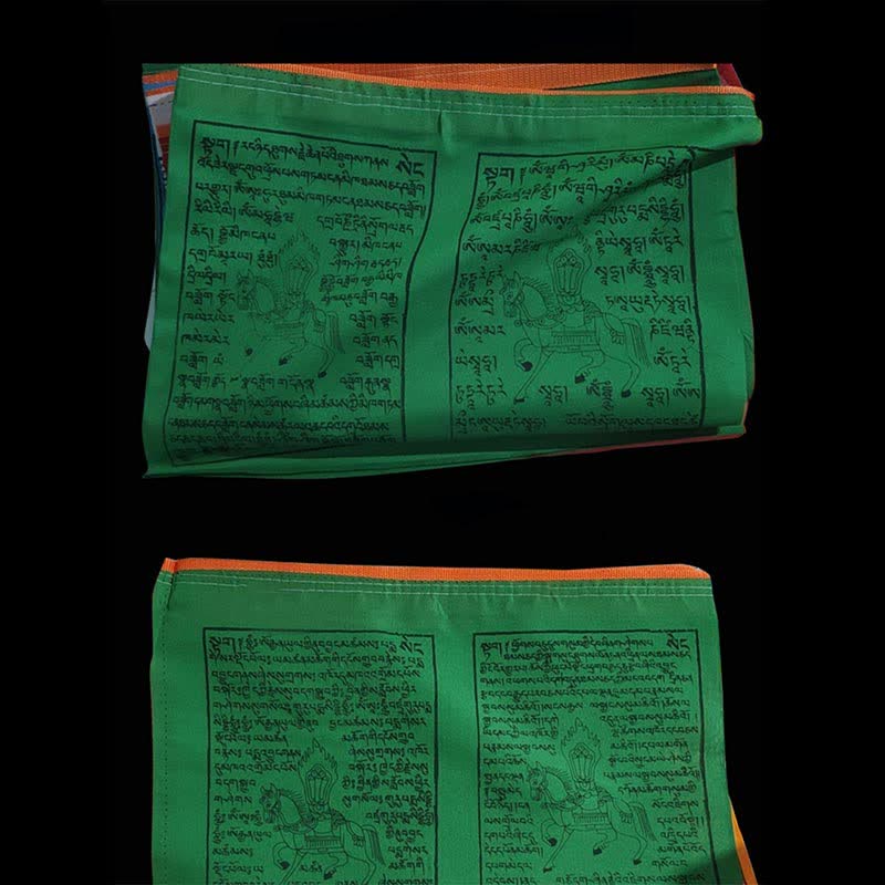 - Each flagย features a large variety of prayers surrounding the center image of lungta, a Windhorse. Lungta is also the Tibetan word for ‘prayer flag’. Circulates a feeling of Harmony and increases the Spiritual Atmosphere. It Brings Spiritual Vibration carried by the wind across the house.