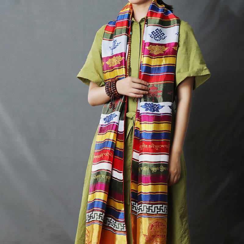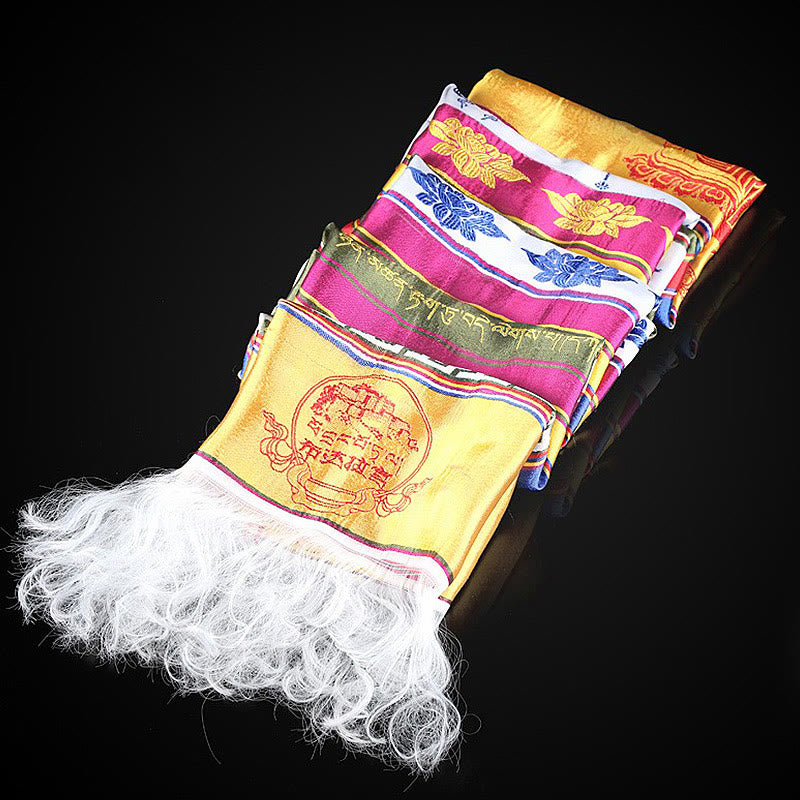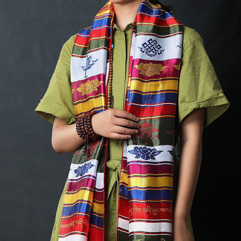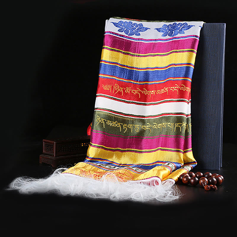 Bask in the richness of Tibetan tradition with the Anyelle Lucky Blessing Khata. This multicolored lotus mantra jacquard decoration not only enhances aesthetic appeal but is deeply rooted in spiritual symbolism. Representing blessings and serenity, the khata is an embodiment of good wishes and harmony for your home. Experience authentic Tibetan charm in every fold.๐