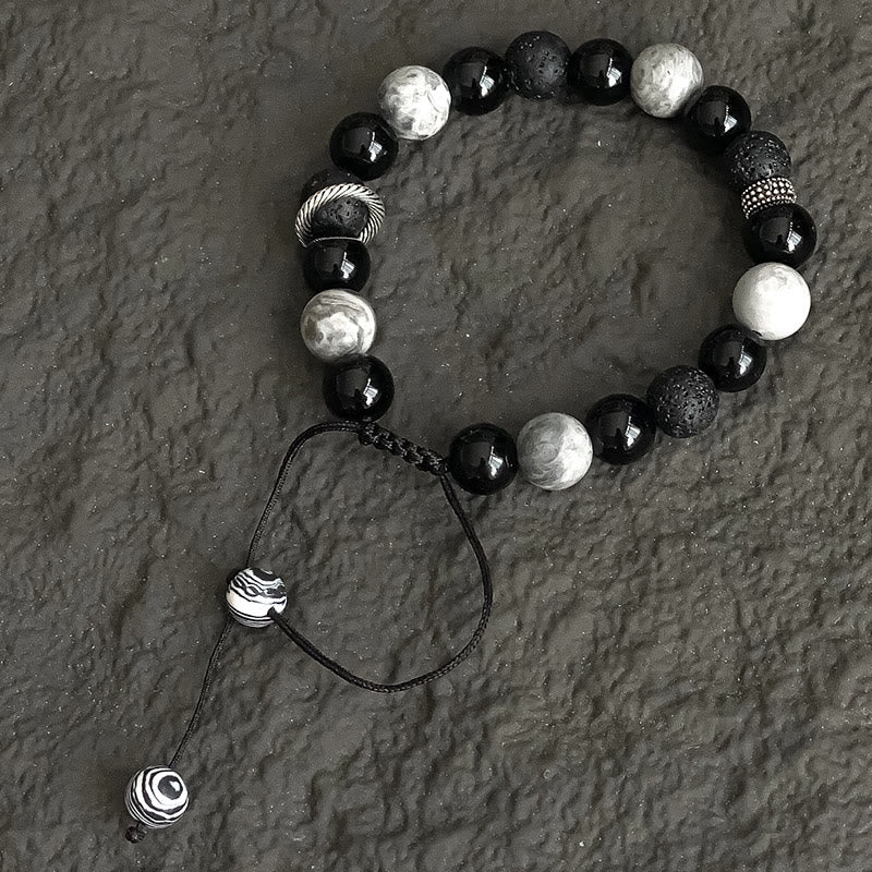 - Material: Lava Rock, Black Obsidian, Picasso Jasper, Alloy, Rope