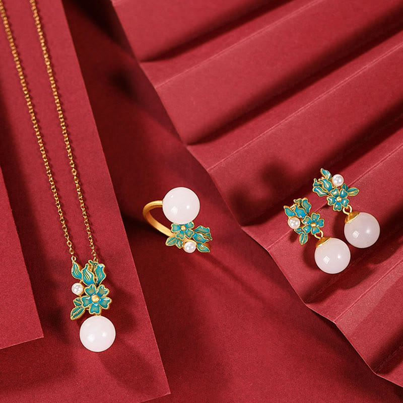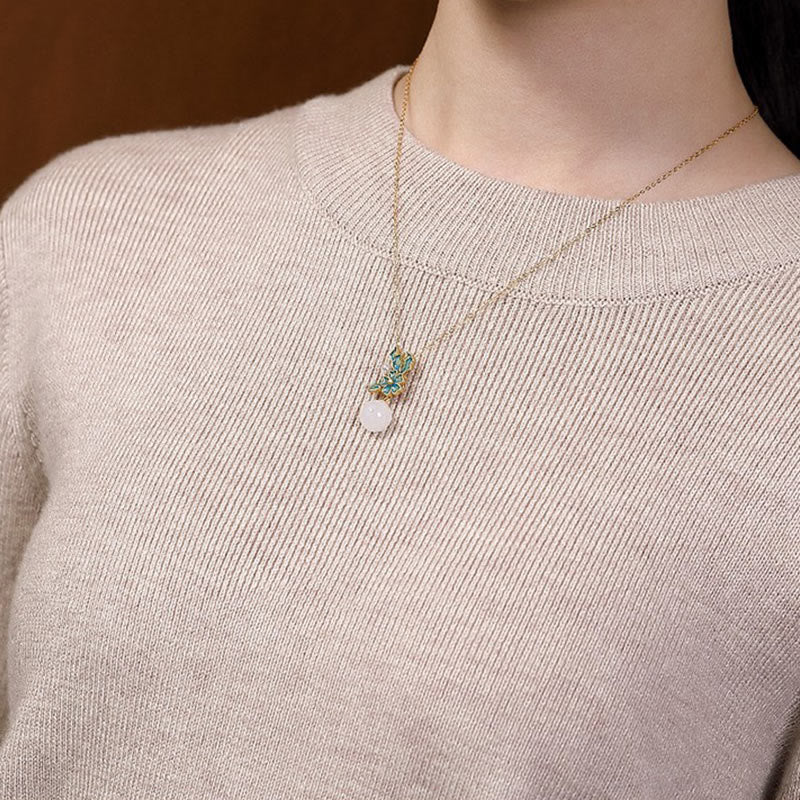 - Material: White Jade, Pearl, 925 Sterling Silver Plated Gold