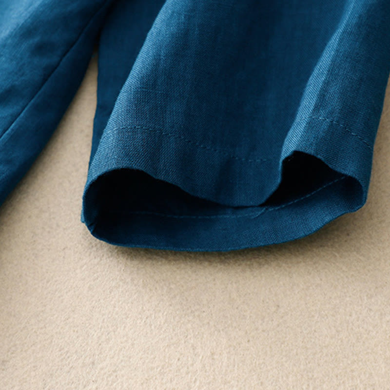 Women's Three Quarter Sleeve Button Cotton Small Suit Jacket With PocketsWomen’s Three Quarter Sleeve Button Cotton Small Suit Jacket With Pockets