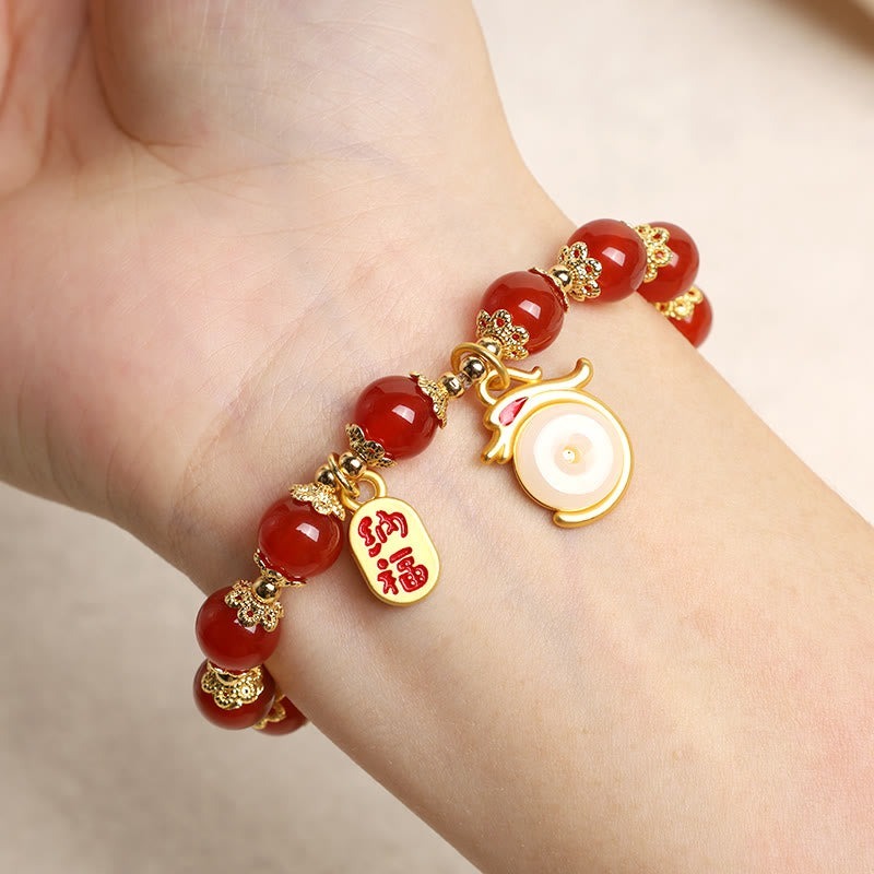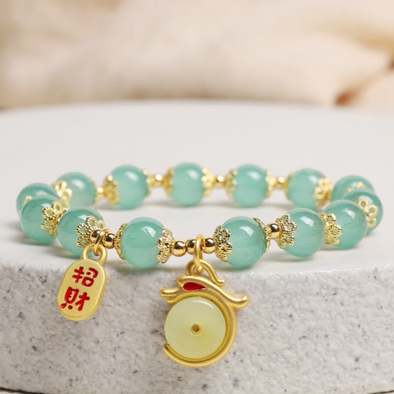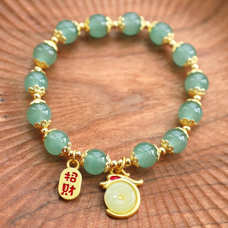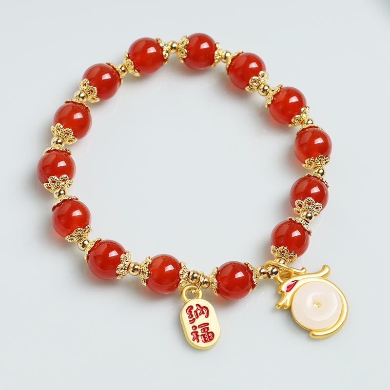 Year of the Dragon Red Agate Green Aventurine Peace Buckle Fu Character Lucky Fortune Bracelet